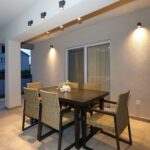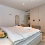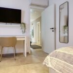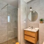 Im Erdgeschoss befindet sich eine Wohnung mit insgesamt 132,84 m2, bestehend aus Flur, Küche mit Esszimmer, Wohnzimmer, drei Schlafzimmern, eines mit eigenem Bad, und einem weiteren Badezimmer. Zur Wohnung gehört auch eine Terrasse. Die Wohnung wurde komplett renoviert im Jahr 2024.