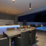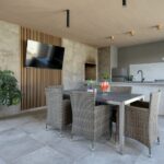 Im gepflegten Garten des Hauses befinden sich ein Parkplatz, Technikraum, WC, Sommerküche und ein Pool von 32 m2. Die Installation für eine Poolheizung ist vorbereitet.