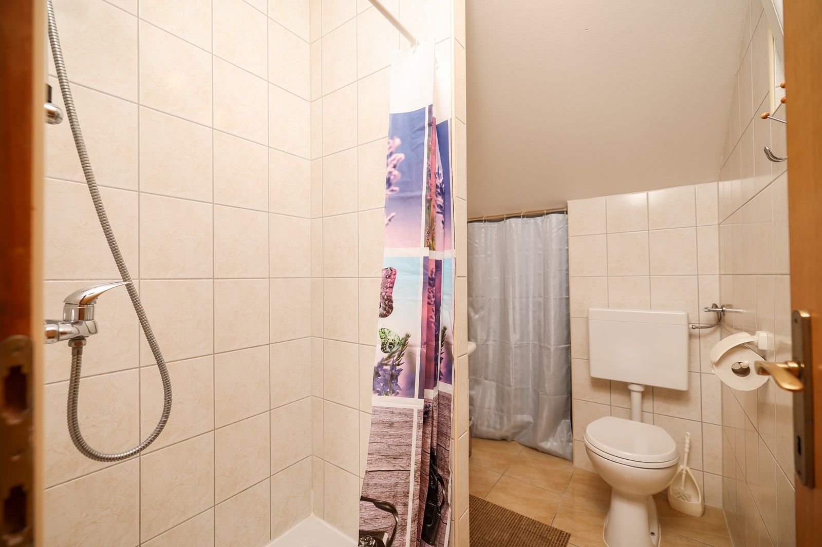 NIN - NINSKE VODICE - Zum Verkauf steht ein Doppelhaus mit drei Wohneinheiten. Das Haus besteht aus Erdgeschoss, erster Etage und Dachgeschoss. Im Erdgeschoss befindet sich eine Zwei-Zimmer-Wohnung. Über eine Außentreppe gelangt man in den ersten Stock, wo sich ebenfalls eine Wohnung mit zwei Schlafzimmern, Badezimmer, Küche, Esszimmer und Terrasse mit Meerblick befindet. Im Dachgeschoss befindet sich eine weitere Zwei-Zimmer-Wohnung. Der Hof des Hauses ist mit einer Außengrillstelle, einem Bereich zum Entspannen, Parkplätzen usw. ausgestattet. Eigentum ist ordnungsgemäß im Alleineigentum.