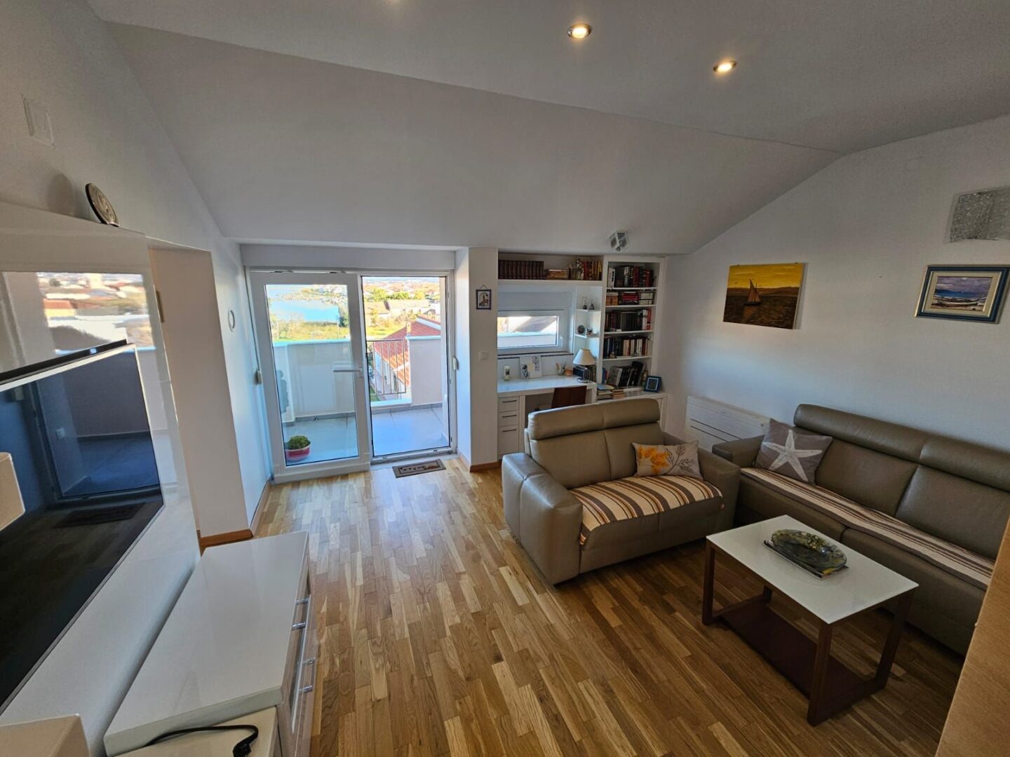 Zum Verkauf steht eine Zweizimmerwohnung im 2. Stock eines kleinen Wohngebäudes. Die Wohnung besteht aus einem Eingangsbereich, einer Küche mit Esszimmer, einem Wohnzimmer, zwei Schlafzimmern, zwei Badezimmern und einer Terrasse. Die Gesamtgrundfläche der Wohnung beträgt 76,26 m2. Von der Wohnung aus hat man einen wunderschönen Blick auf das Zentrum von Nin, das Meer und den Velebit. In der Nähe befinden sich alle Annehmlichkeiten wie Geschäfte, das Zentrum, Restaurants usw. Zur Wohnung gehören auch zwei Parkplätze. Eigentum ist ordnungsgemäß im Grundbuch eingetragen.
