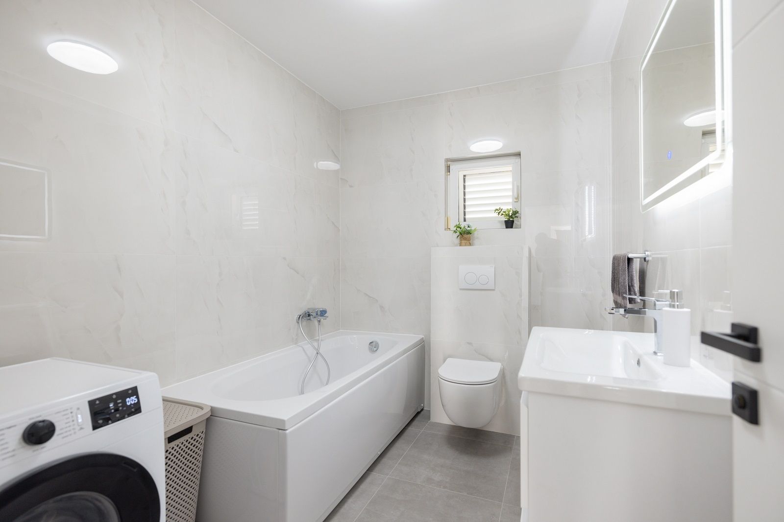 Das Haus besteht aus Erdgeschoss und Obergeschoss. Im Erdgeschoss befinden sich: Küche, Wohnzimmer, Esszimmer, WC und Treppe. Im Obergeschoss gibt es einen Flur, 3 Schlafzimmer und 3 Badezimmer.