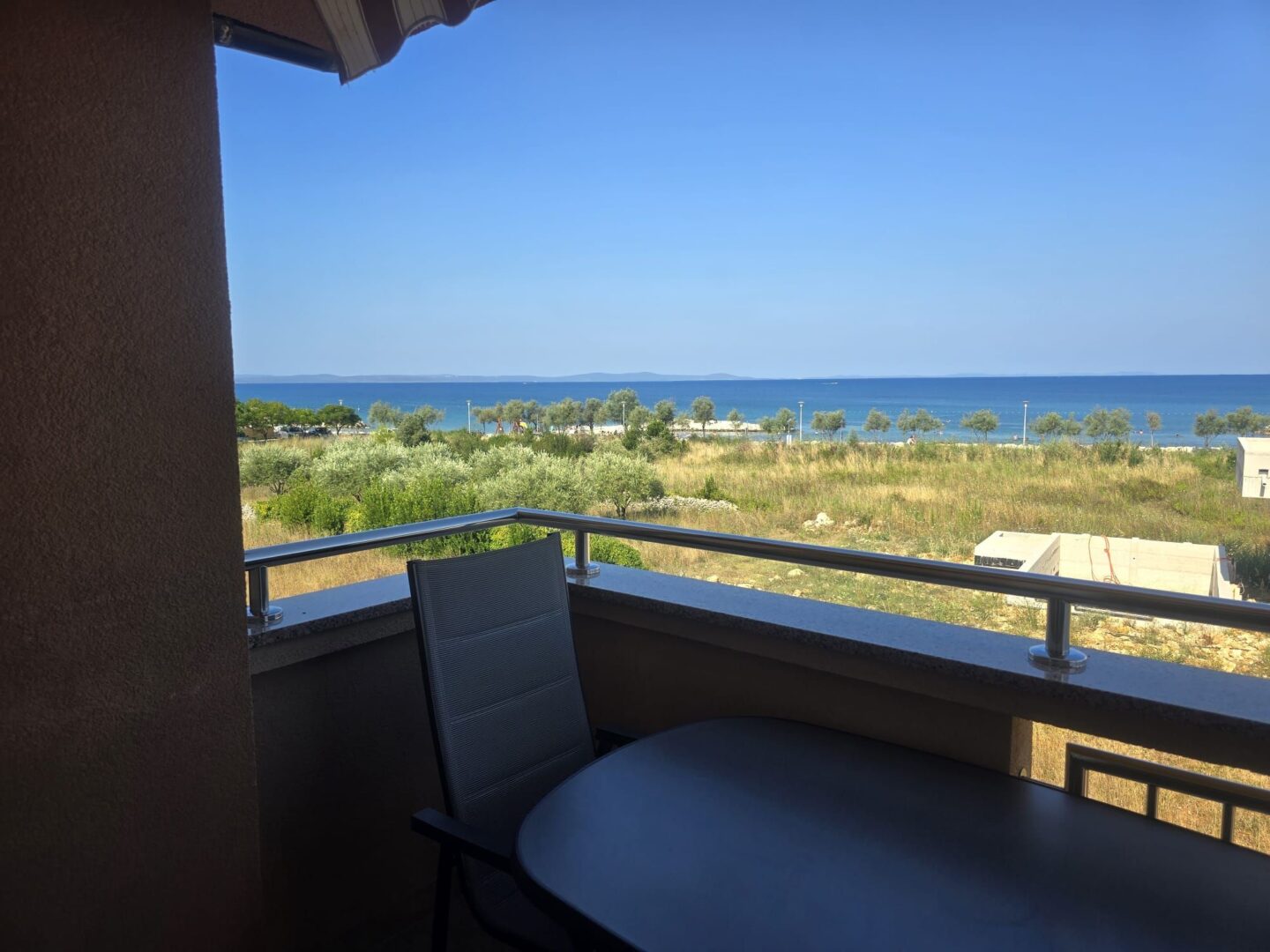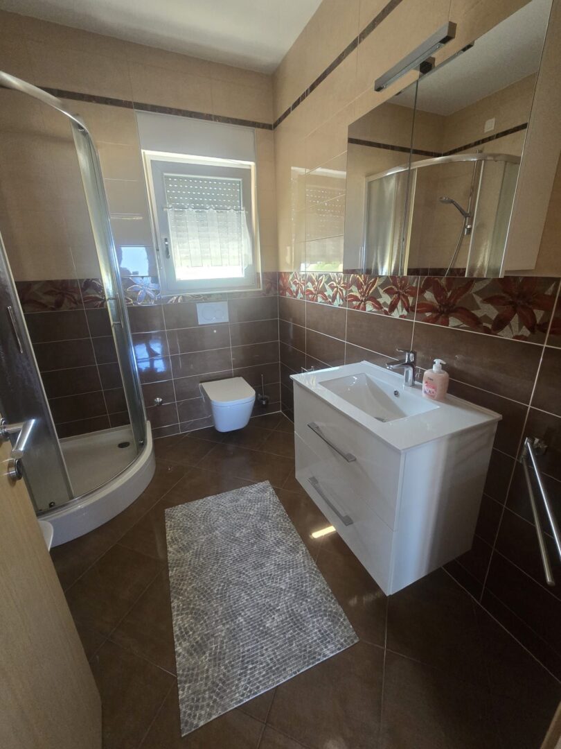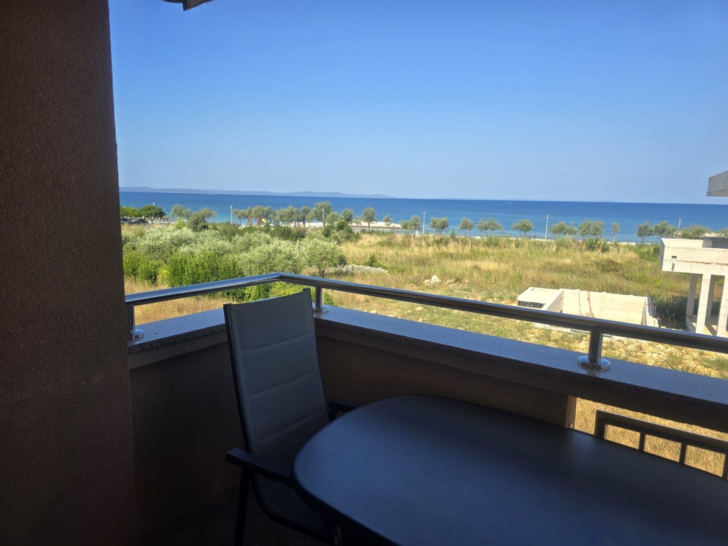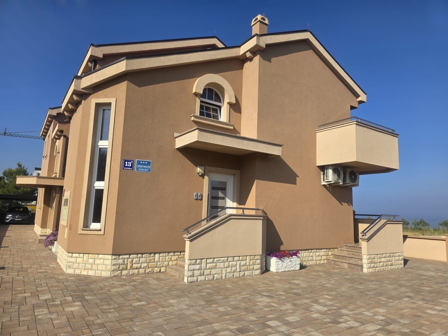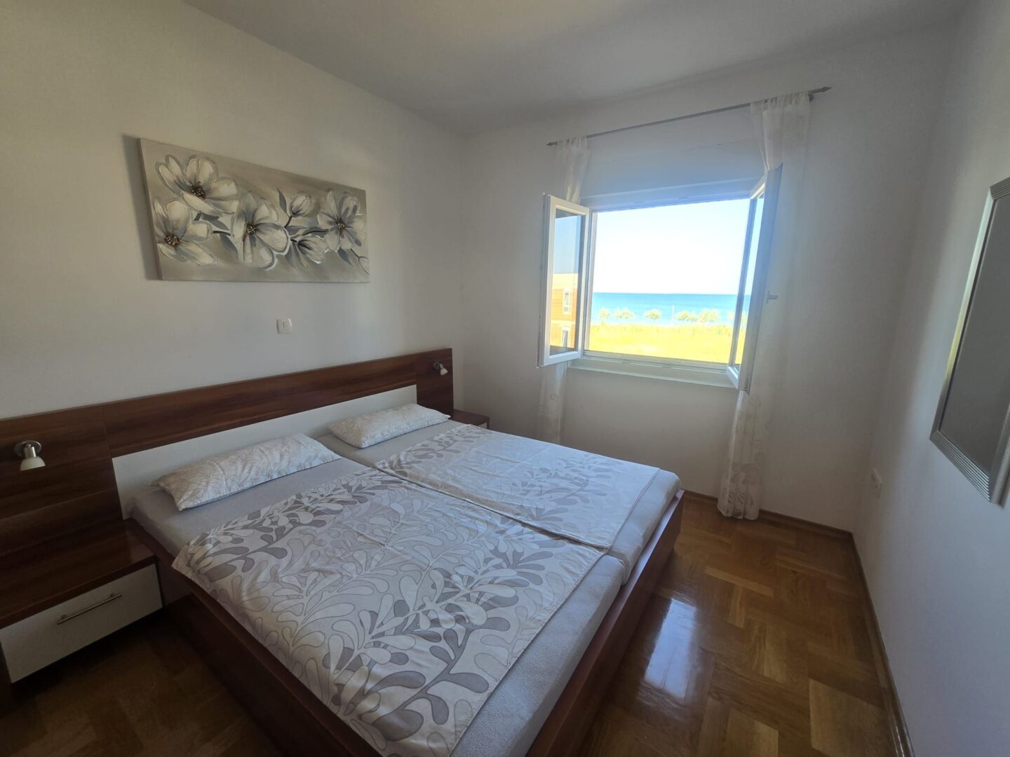 In demselben Gebäude wird eine Zwei-Zimmer-Wohnung mit einer Grundfläche von 57,90 m2 im Erdgeschoss verkauft. Sie besteht aus einer Küche, einem Esszimmer, einem Wohnzimmer, einer Loggia, einer Terrasse, einem Badezimmer und zwei Schlafzimmern. Von der Küche, einem Schlafzimmer und der Terrasse aus bietet sich ein offener Blick auf das Meer. Zur Wohnung gehören zwei Parkplätze mit einer Fläche von 26 m2, ein Hof und ein Garten mit einem Außengrill mit einer Fläche von 39,80 m2. Die Gesamtbruttowohnfläche der Wohnung mit Zubehör beträgt 123,70 m2 (Nettowohnfläche 71,94 m2). Preis: 268.000,00 Euro.