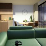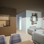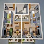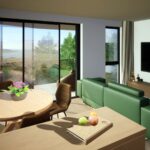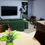 Das Apartment besteht aus einem Flur, zwei Schlafzimmern und einem Badezimmer, sowie einer Küche, einem Wohnzimmer und einem Esszimmer. Die Gesamtgrundfläche des Apartments beträgt 53,89 m2. Zum Apartment gehören auch ein Teil des Gartens und zwei Parkplätze.