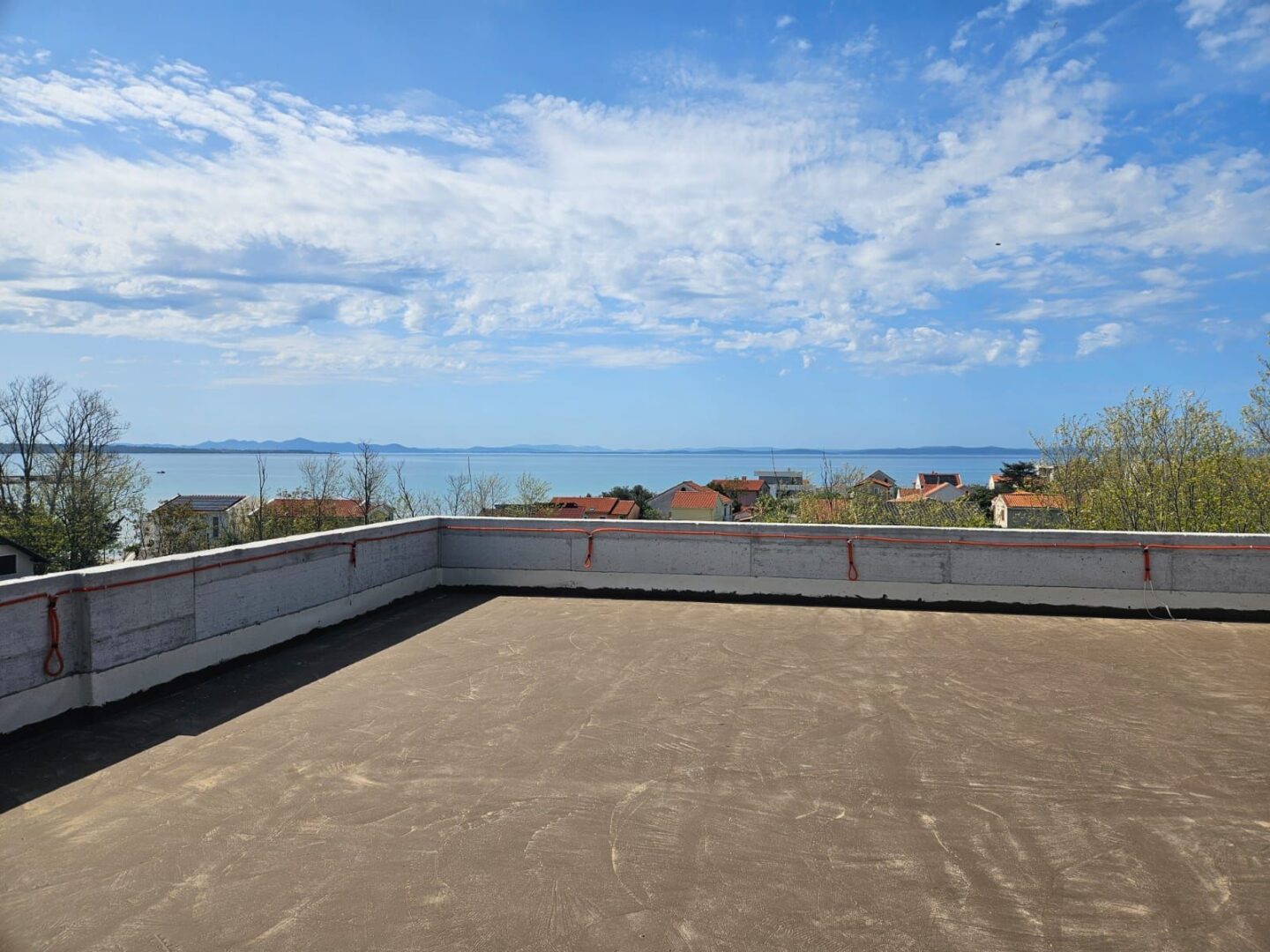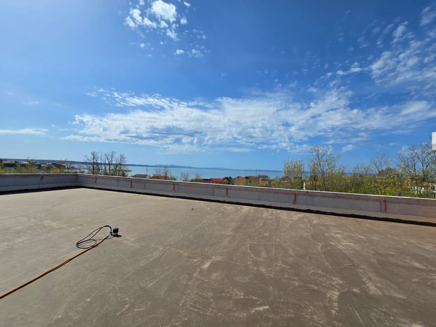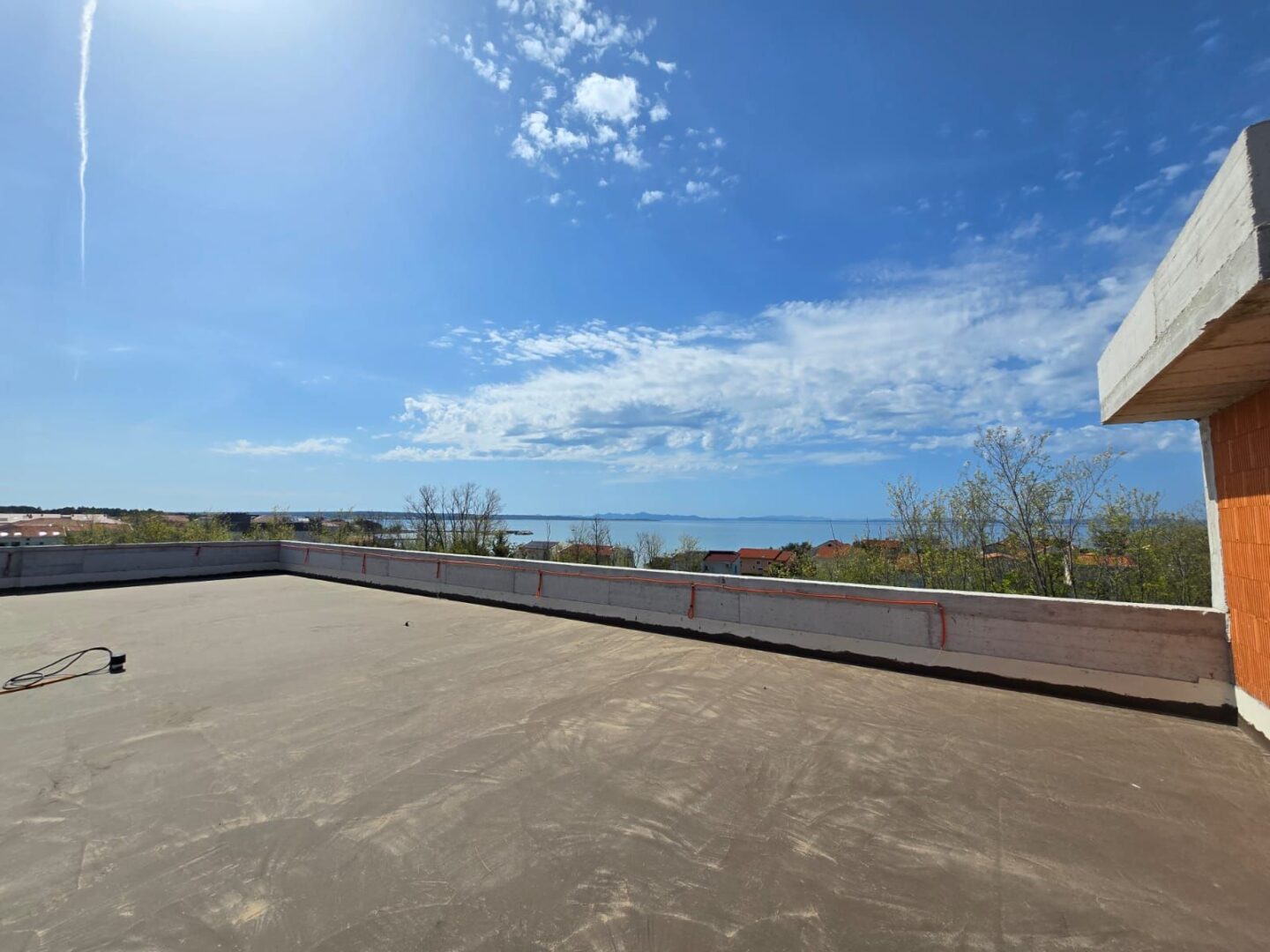 PRIVLAKA - Wohnung im ersten Stock eines kleinen Wohngebäudes. Die Wohnung besteht aus drei Schlafzimmern, von denen eines ein eigenes Badezimmer und einen begehbaren Kleiderschrank hat, sowie einem weiteren Badezimmer, WC, Küche, Wohnzimmer, Flur und einer Terrasse von 32,90 m². Die Gesamtgrundfläche der Wohnung im ersten Stock beträgt 178 m². Zur Wohnung gehört auch eine Dachterrasse von 182,90 m² mit Meerblick. Die Wohnung befindet sich 300 m vom Meer entfernt.