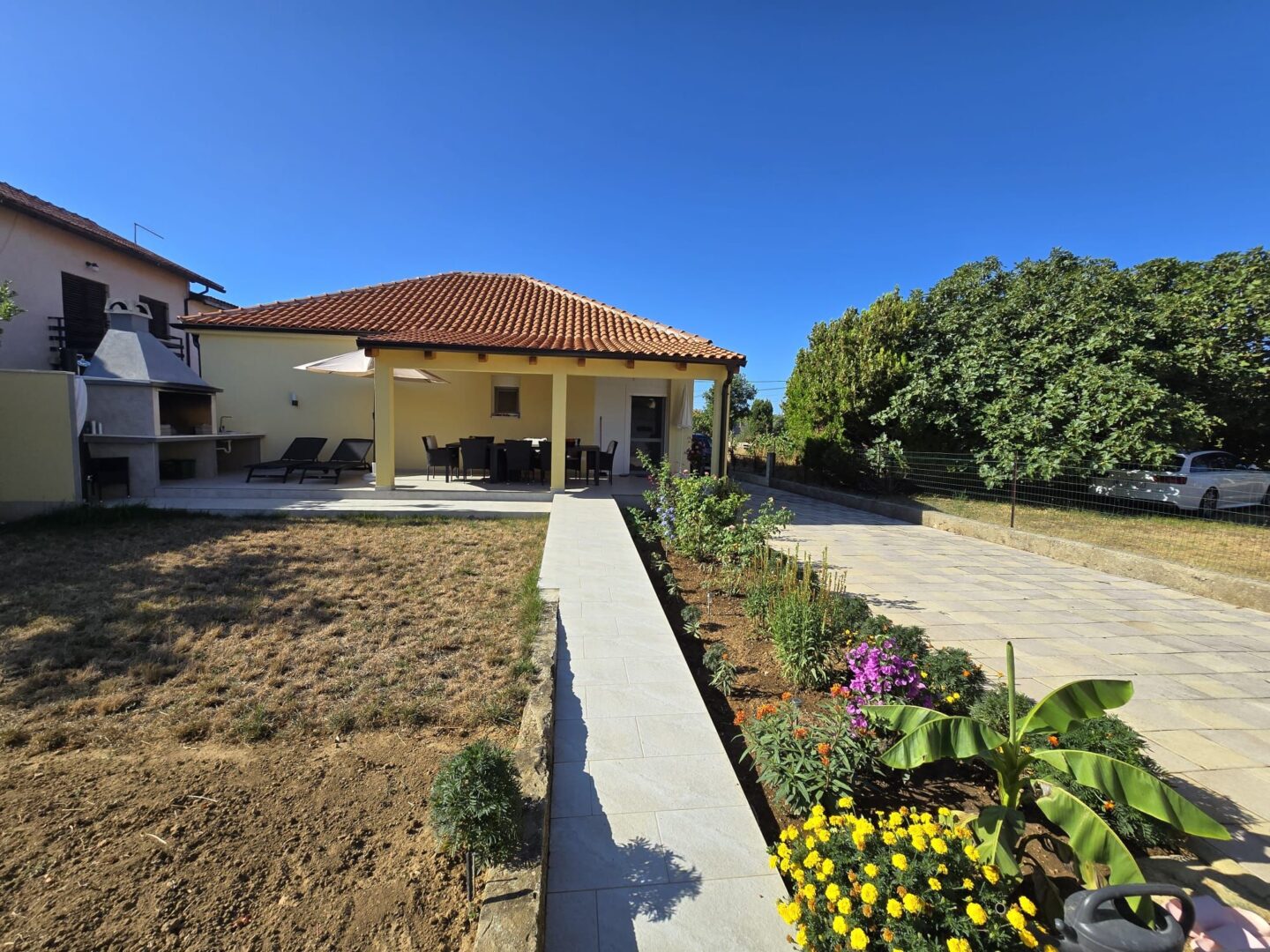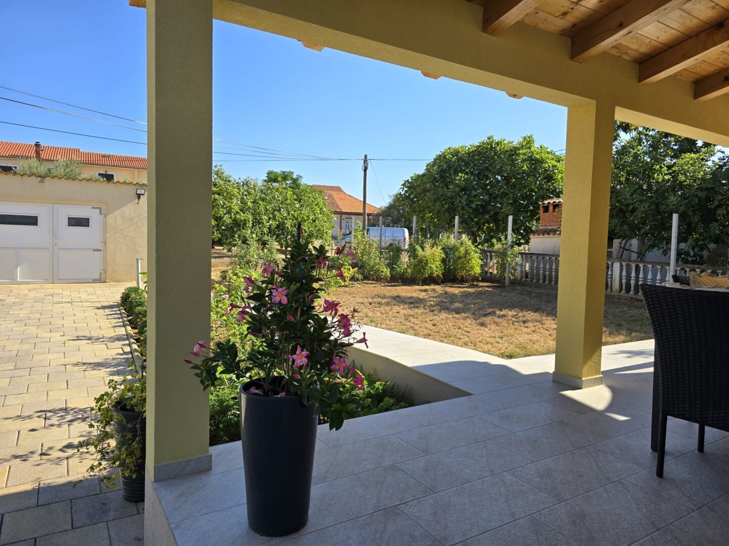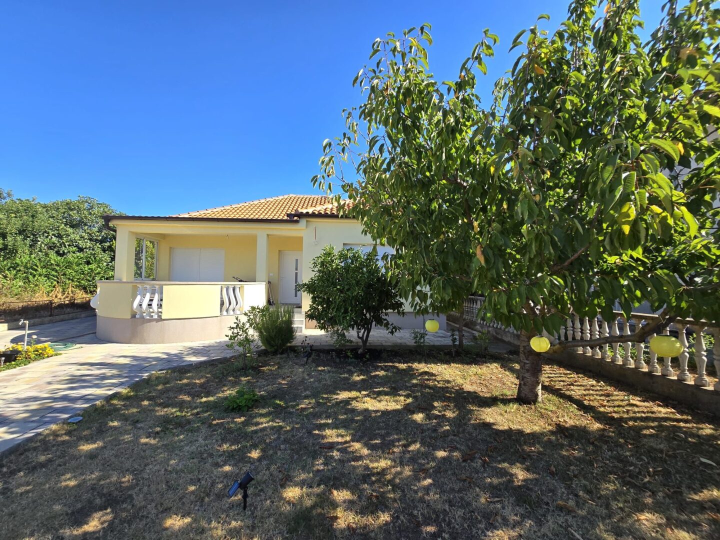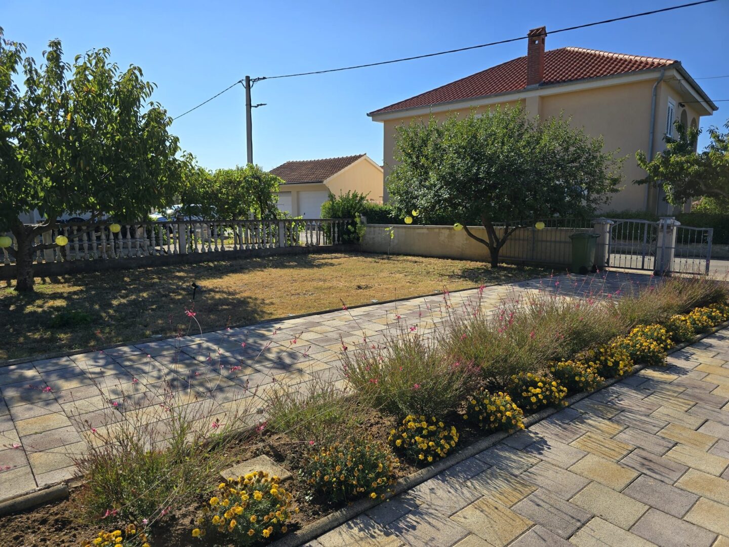Zum Verkauf steht ein freistehendes ebenerdiges Haus in Privlaka. Das Haus ist 800 m vom Meer und einem wunderschönen Sandstrand entfernt. Das Haus besteht aus einem Flur, einer Küche mit Esszimmer und Wohnzimmer, 3 Schlafzimmern, einem Badezimmer und einer separaten Toilette. Das Haus wurde im Jahr 1984 erbaut und im Jahr 2022 komplett renoviert, wobei Fußbodenheizung und eine Wärmedämmung installiert wurden, was es für einen ganzjährigen Aufenthalt geeignet macht. Das Haus verfügt über eine Klimaanlage und einen Kamin. Von der Terrasse gelangt man in den geräumigen Garten, in dem sich eine Dusche, ein Grill, eine Garage, mehrere Parkplätze, ein Werkzeugschuppen, ein Garten und ein Olivenhain mit insgesamt 12 Olivenbäumen befinden. Das Eigentum ist ordnungsgemäß im Verhältnis 1/1. Der Käufer zahlt die Provision.