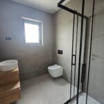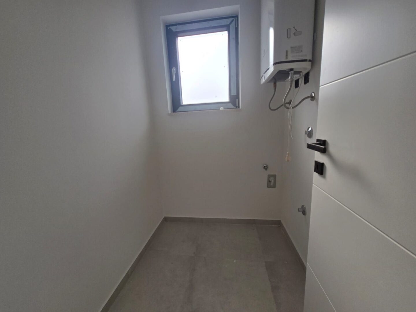Die Wohnung besteht aus einem Flur, einem Badezimmer, einer Küche, einem Wohnzimmer, zwei Schlafzimmern und einer überdachten Terrasse. Die Gesamtgrundfläche der Wohnung beträgt 76,30 m2. Zur Wohnung gehören auch 2 Parkplätze, und sie wird im Dezember 2025 bezugsfertig sein.