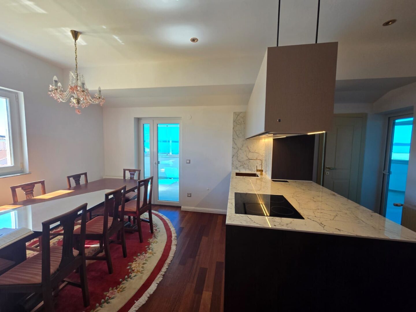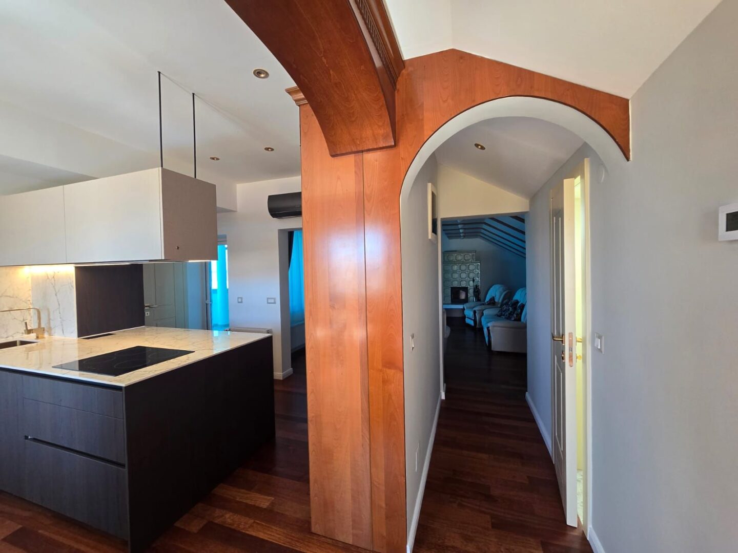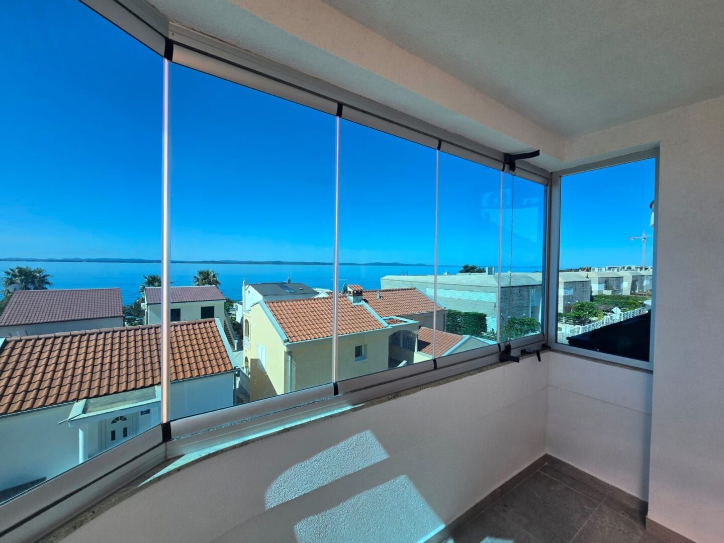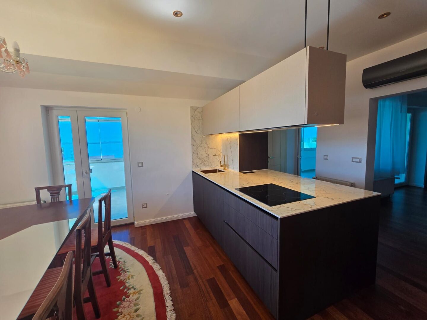 Die Wohnung befindet sich im 1. und 2. Stock eines Gebäudes. Im 1. Stock befindet sich der Eingang zur Wohnung, Treppenhaus und Garderobe. Im 2. Stock befinden sich 2 Schlafzimmer, Wohnzimmer, Küche und Esszimmer, Badezimmer, Abstellraum und WC. Die Wohnung ist mit elektrischer Heizung und Klimaanlage ausgestattet. Es gibt auch einen Innen- und Außenkamin. Die Wohnung verfügt über 3 Terrassen mit offenem Blick auf das Meer. Die gesamte Möblierung ist neu und maßgefertigt. Zur Wohnung gehört ein Parkplatz.