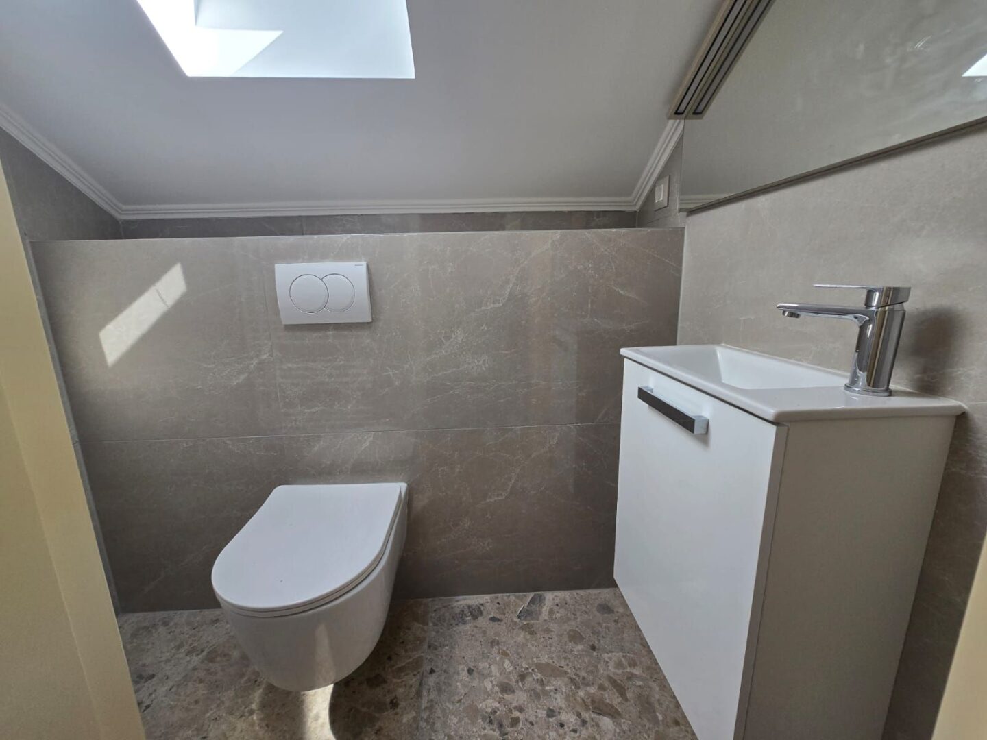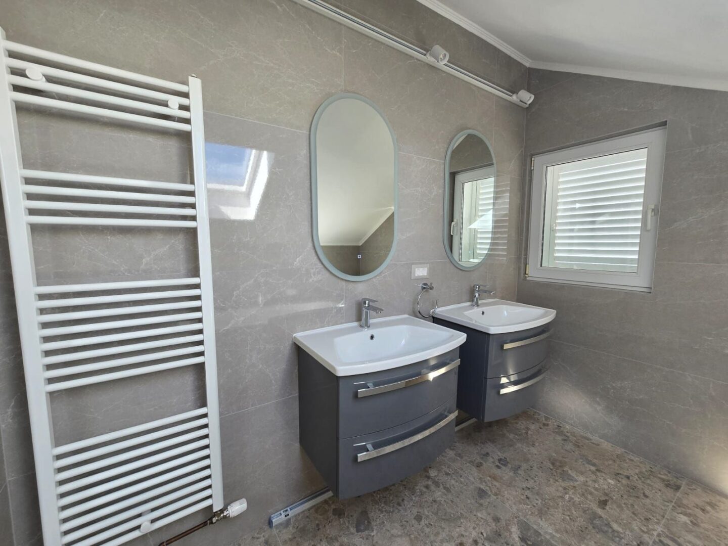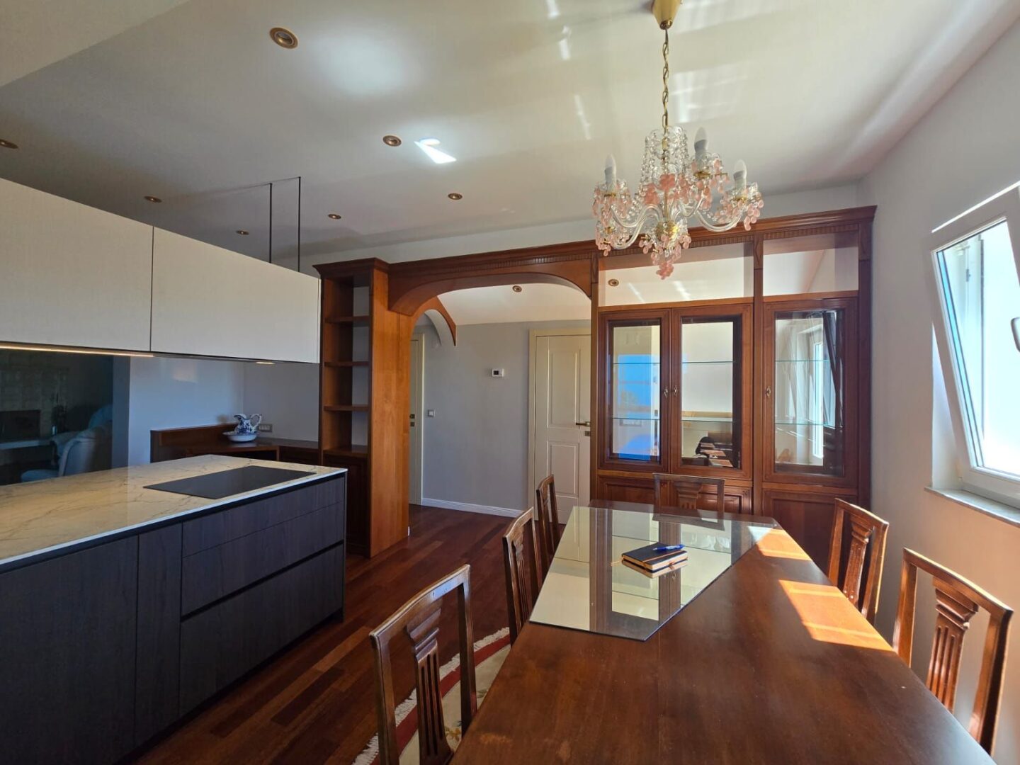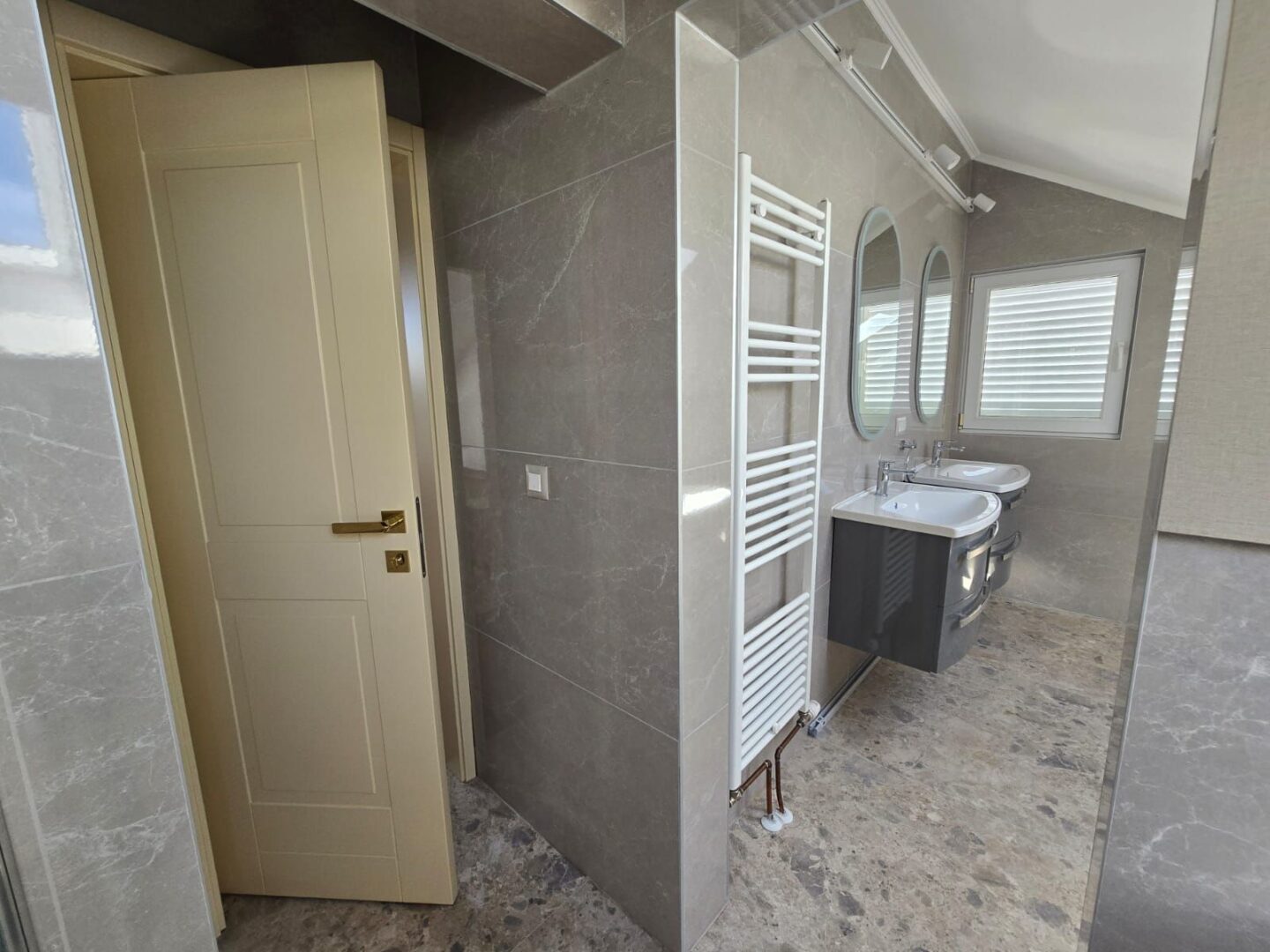 Die Wohnung befindet sich im 1. und 2. Stock eines Gebäudes. Im 1. Stock befindet sich der Eingang zur Wohnung, Treppenhaus und Garderobe. Im 2. Stock befinden sich 2 Schlafzimmer, Wohnzimmer, Küche und Esszimmer, Badezimmer, Abstellraum und WC. Die Wohnung ist mit elektrischer Heizung und Klimaanlage ausgestattet. Es gibt auch einen Innen- und Außenkamin. Die Wohnung verfügt über 3 Terrassen mit offenem Blick auf das Meer. Die gesamte Möblierung ist neu und maßgefertigt. Zur Wohnung gehört ein Parkplatz.