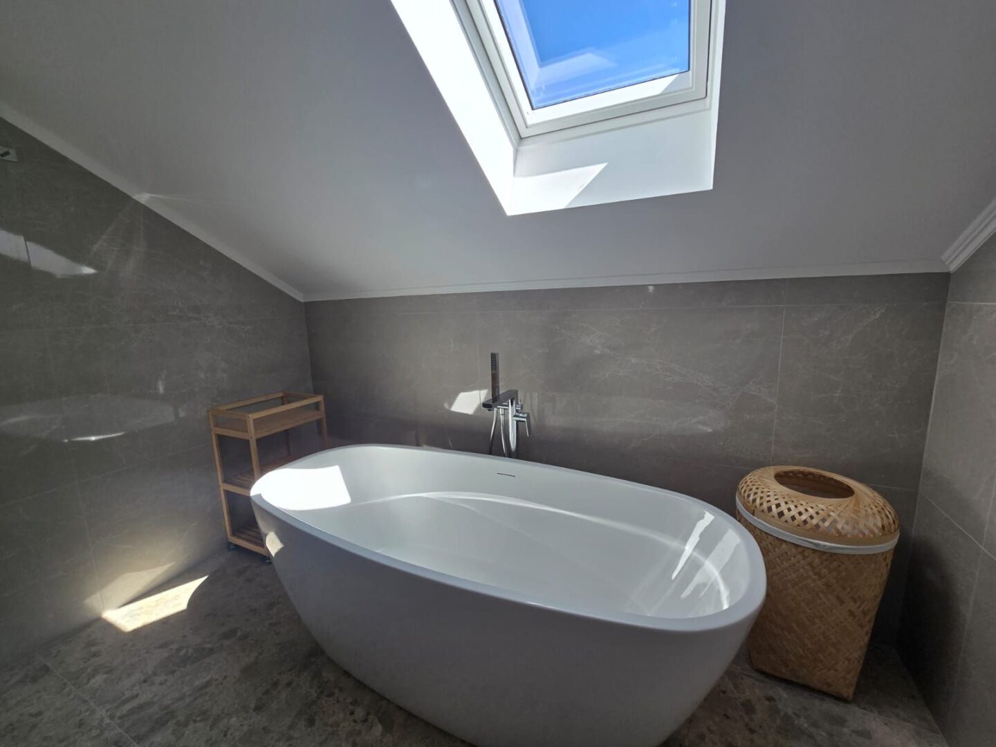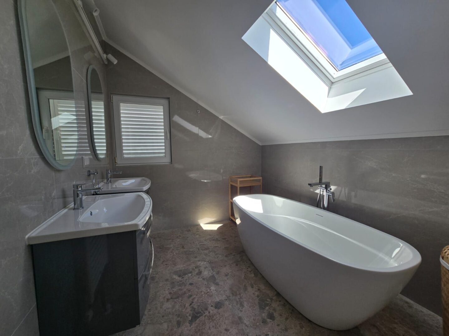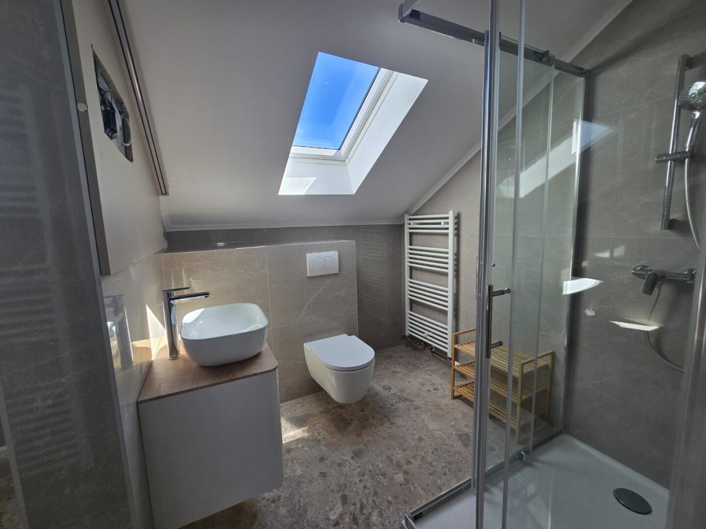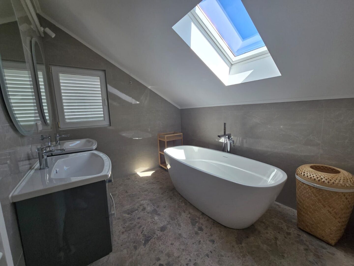 Die Wohnung befindet sich im 1. und 2. Stock eines Gebäudes. Im 1. Stock befindet sich der Eingang zur Wohnung, Treppenhaus und Garderobe. Im 2. Stock befinden sich 2 Schlafzimmer, Wohnzimmer, Küche und Esszimmer, Badezimmer, Abstellraum und WC. Die Wohnung ist mit elektrischer Heizung und Klimaanlage ausgestattet. Es gibt auch einen Innen- und Außenkamin. Die Wohnung verfügt über 3 Terrassen mit offenem Blick auf das Meer. Die gesamte Möblierung ist neu und maßgefertigt. Zur Wohnung gehört ein Parkplatz.