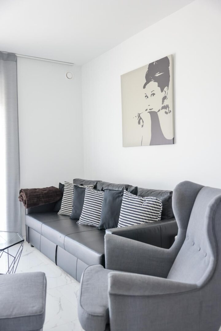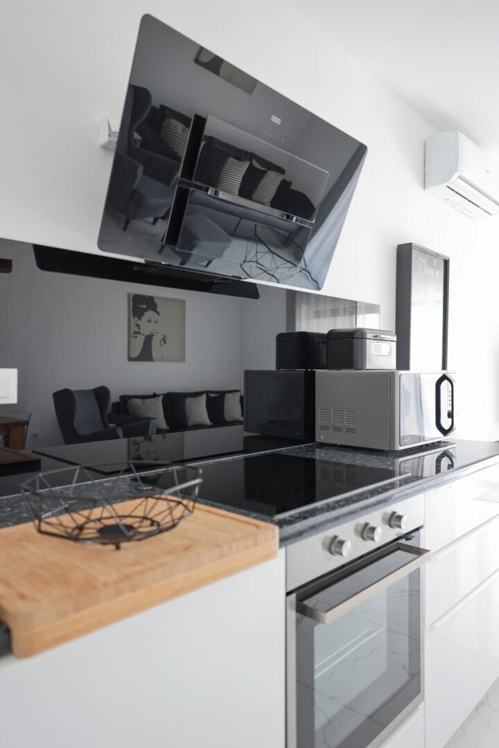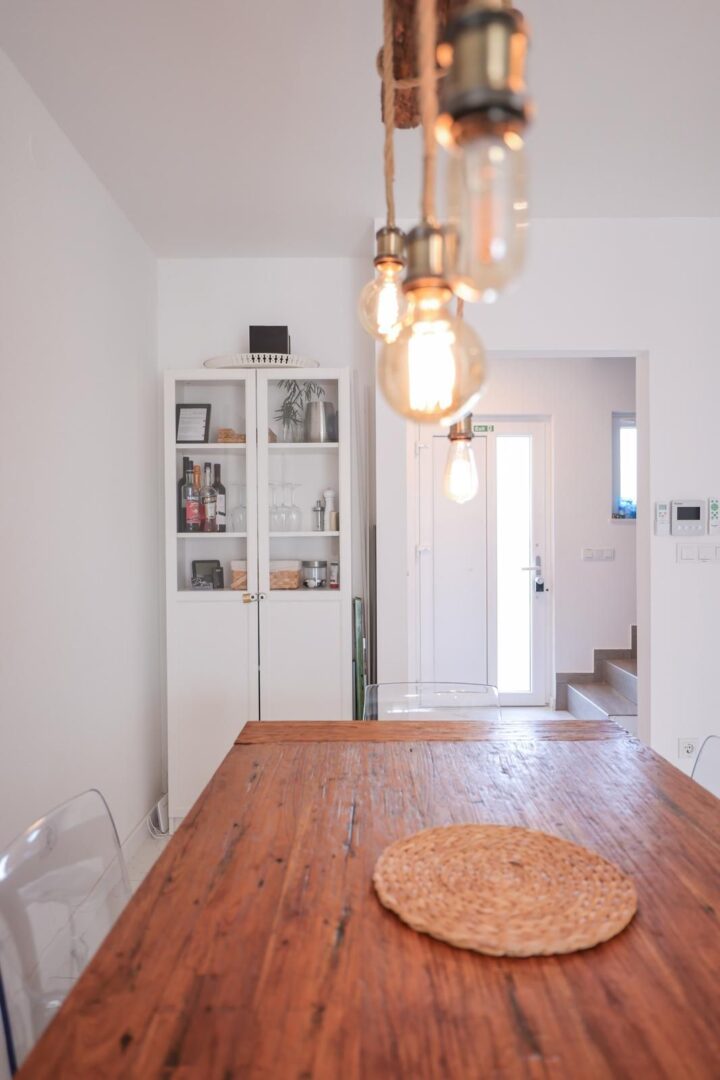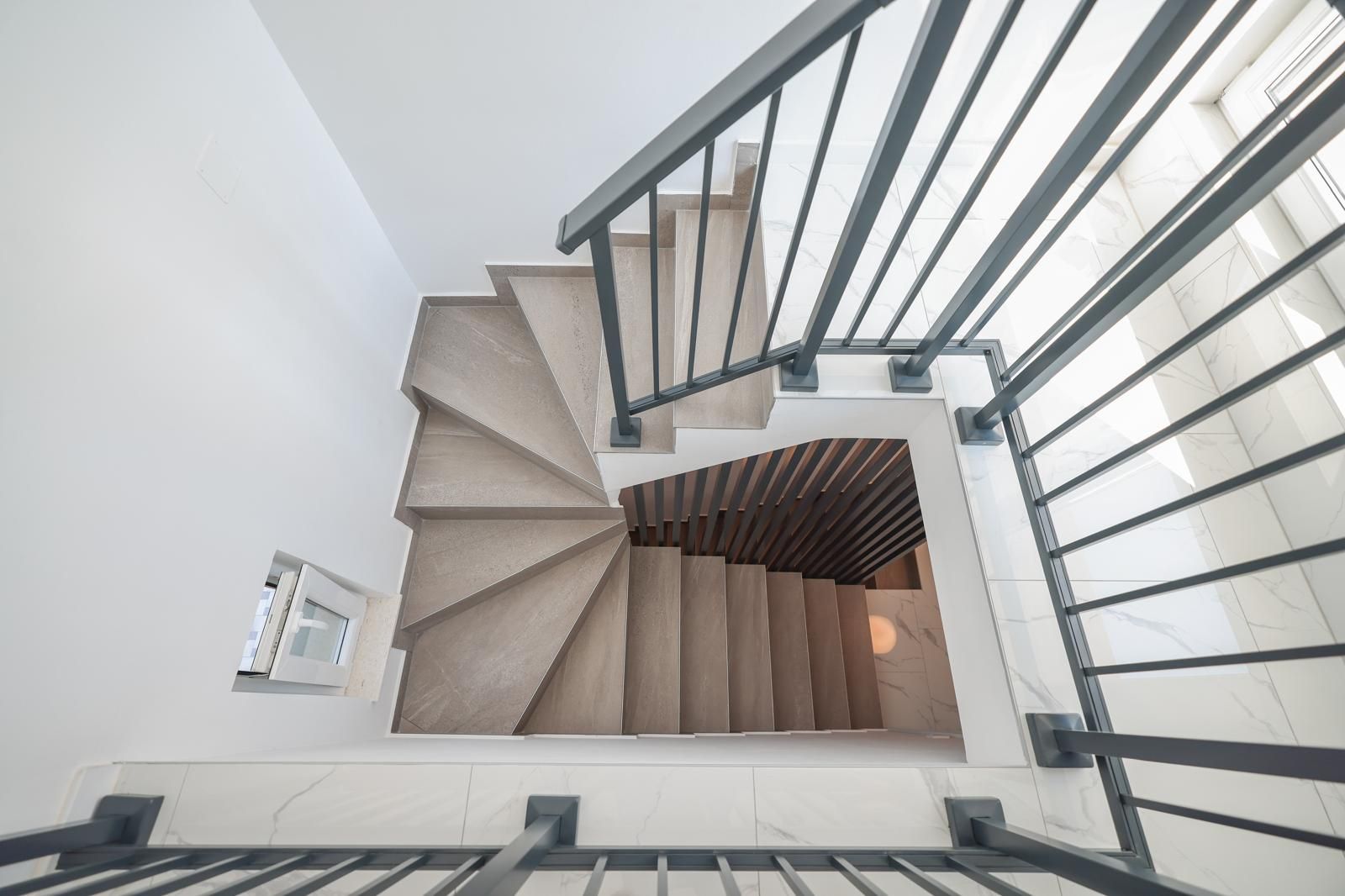 Das Haus besteht aus einem Erdgeschoss, dem 1. Stock und einer Dachterrasse. Im Erdgeschoss befinden sich der Eingang, Abstellraum, WC, Küche, Wohnzimmer, Esszimmer und Terrasse. Über eine Innentreppe gelangt man in den 1. Stock, wo sich ein Flur, ein Badezimmer, 2 Schlafzimmer und ein Balkon befinden. Zum Haus gehört auch eine Dachterrasse mit einer Teeküche, sowie ein Garten im Erdgeschoss und ein Parkplatz.