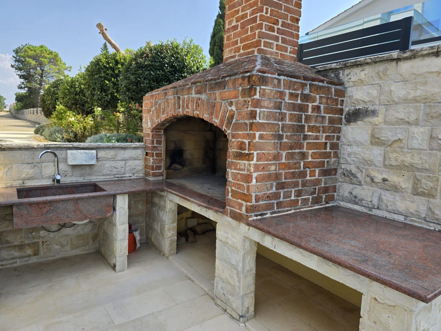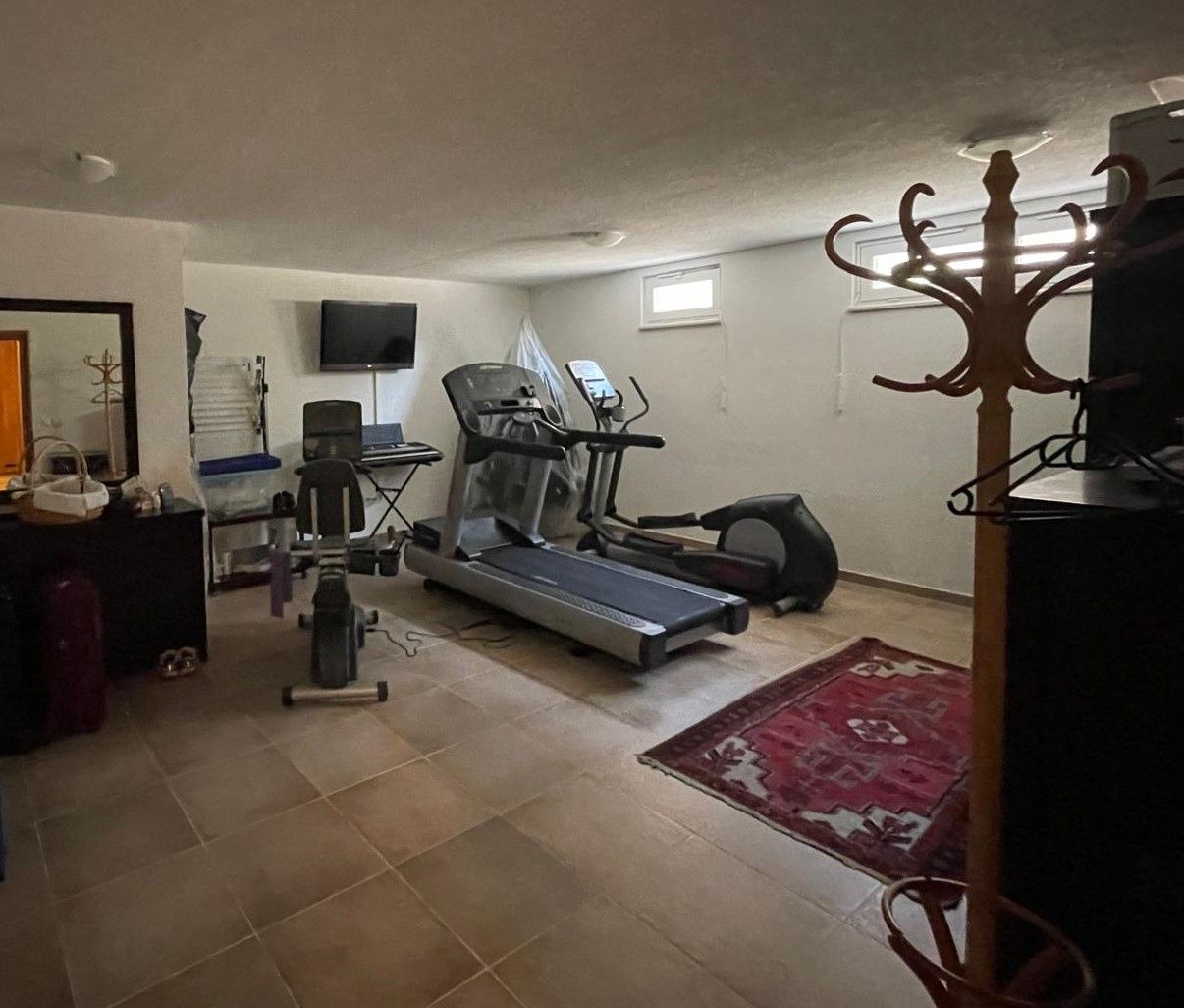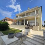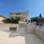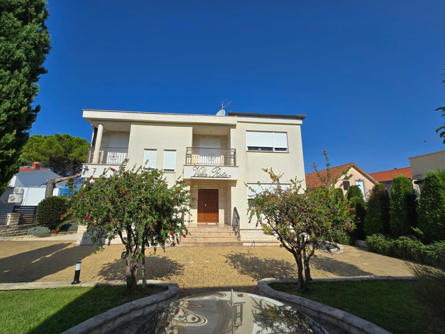 ZUKVE - VRSI - In der ersten Reihe zum Meer befindet sich eine Villa mit drei Etagen (Keller, Erdgeschoss und 1. Stock). Im Keller befindet sich ein Weinkeller mit Kamin und einem Tisch zum geselligen Beisammensein, ein Fitnessraum mit Trainingsgeräten, ein Heizraum, ein ordentlich eingerichteter Weinkeller mit maßgefertigten Türen und 4 Abstellräume. Das Erdgeschoss besteht aus einem überdachten Eingang, einem Flur, einem Arbeitszimmer, einem Badezimmer, einer Küche, einem Wohn- und Esszimmer, einem Abstellraum und einer Terrasse. Über eine Innentreppe gelangt man in den ersten Stock, wo sich ein Flur, zwei Schlafzimmer, ein Lesezimmer, ein Waschraum, eine Toilette, 3 überdachte Balkone und ein Wellnessbereich mit Sauna, Whirlpool und Badezimmer befinden. Die Grundfläche des größeren Hauses beträgt ca. 448,90 m2.