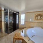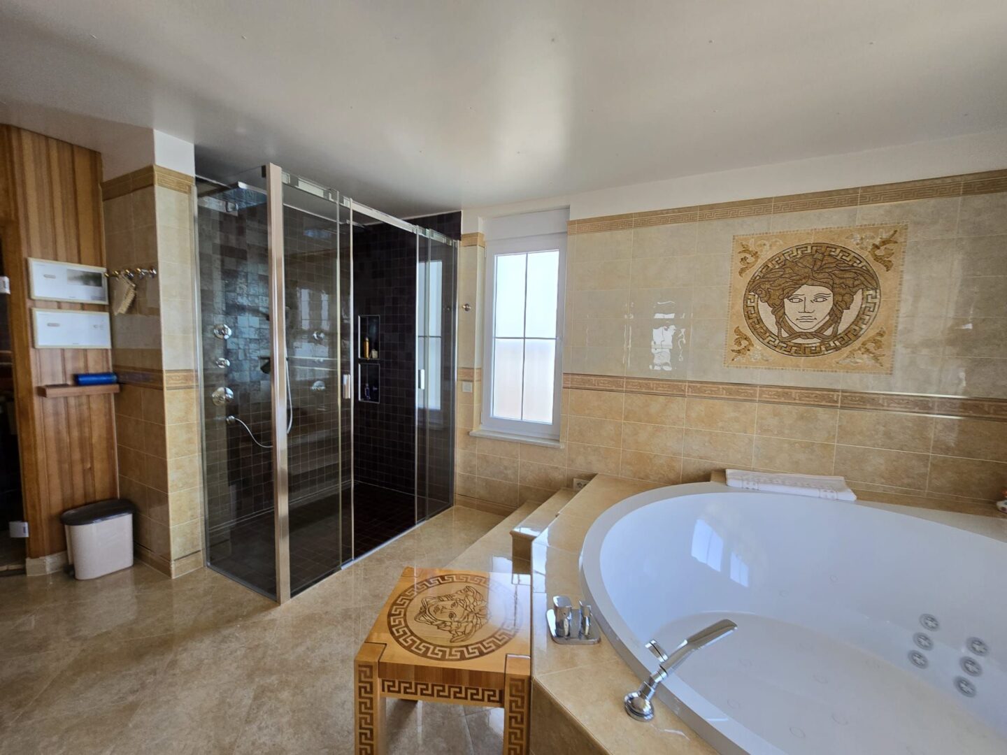 Die Bodenbeläge sind Fliesen. Die Fenster sind aus PVC-Material mit Fliegengittern und elektrischen Rollläden. Die Eingangstüren sind einbruch- und feuerhemmend. Das Haus verfügt über eine Fußbodenheizung im gesamten Haus. Außerdem verfügt dieses Haus über eine zentrale Klimaanlage. Auf dem Dach des Hauses sind Solarpaneele installiert. Im Keller befindet sich ein Heizraum für Solar-, Fußbodenheizung und Klimaanlage. Im Keller befinden sich auch Wasserfilter. Das Haus hat mehrere Kamine. Es ist mit einem Alarmsystem und einer Videoüberwachung ausgestattet. Im Garten gibt es eine Außendusche und einen Grill.