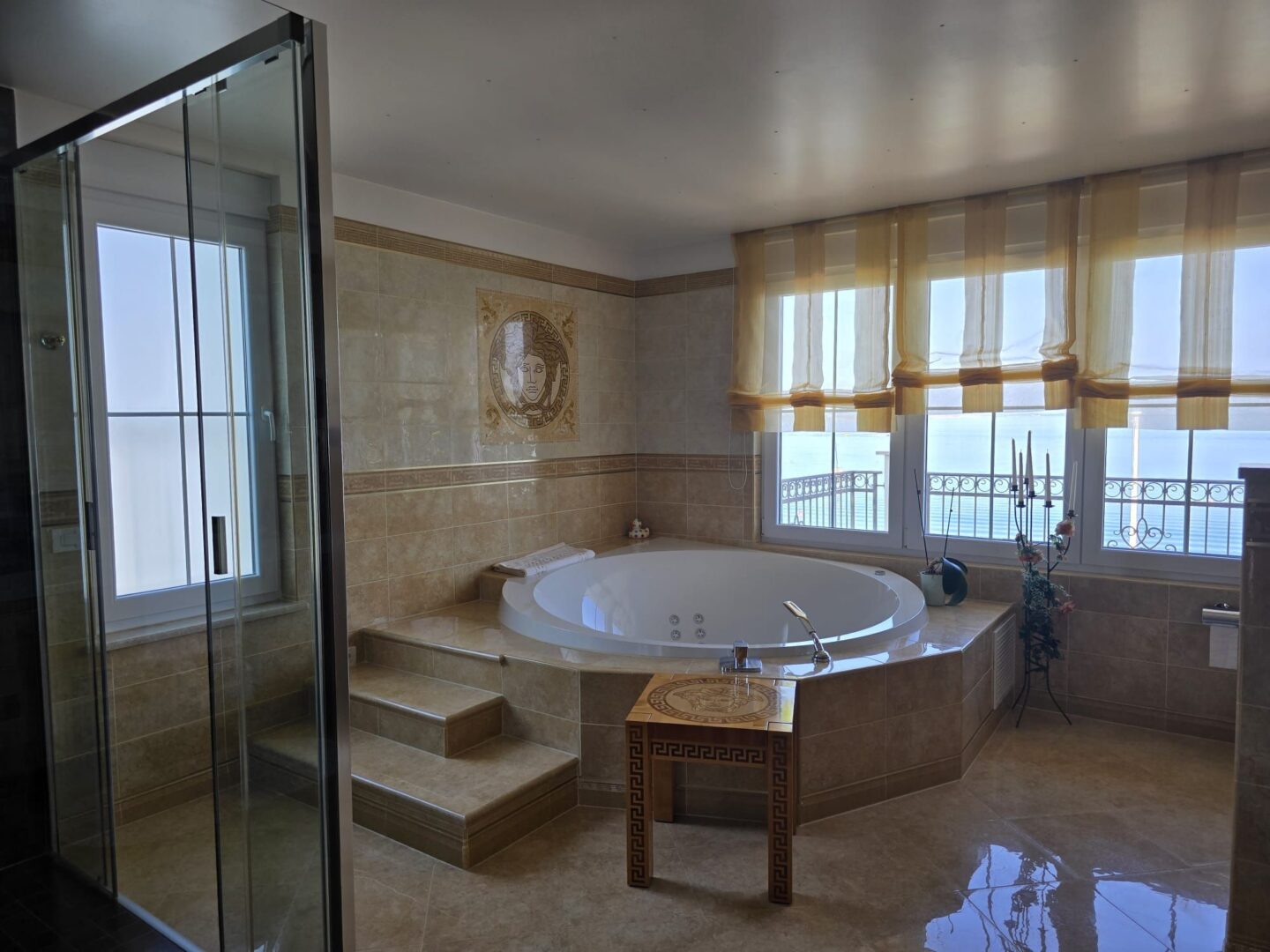 Die Besonderheit dieser Immobilie ist ihre Lage direkt am Meer mit einem wunderschönen Blick und einem gepflegten Garten.