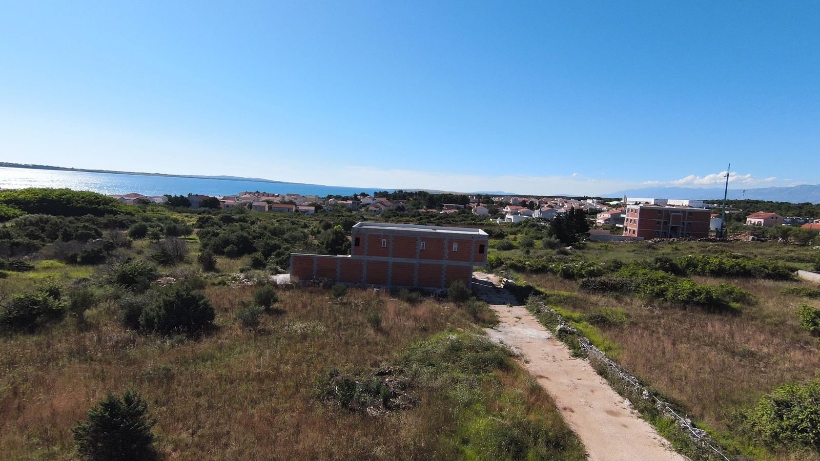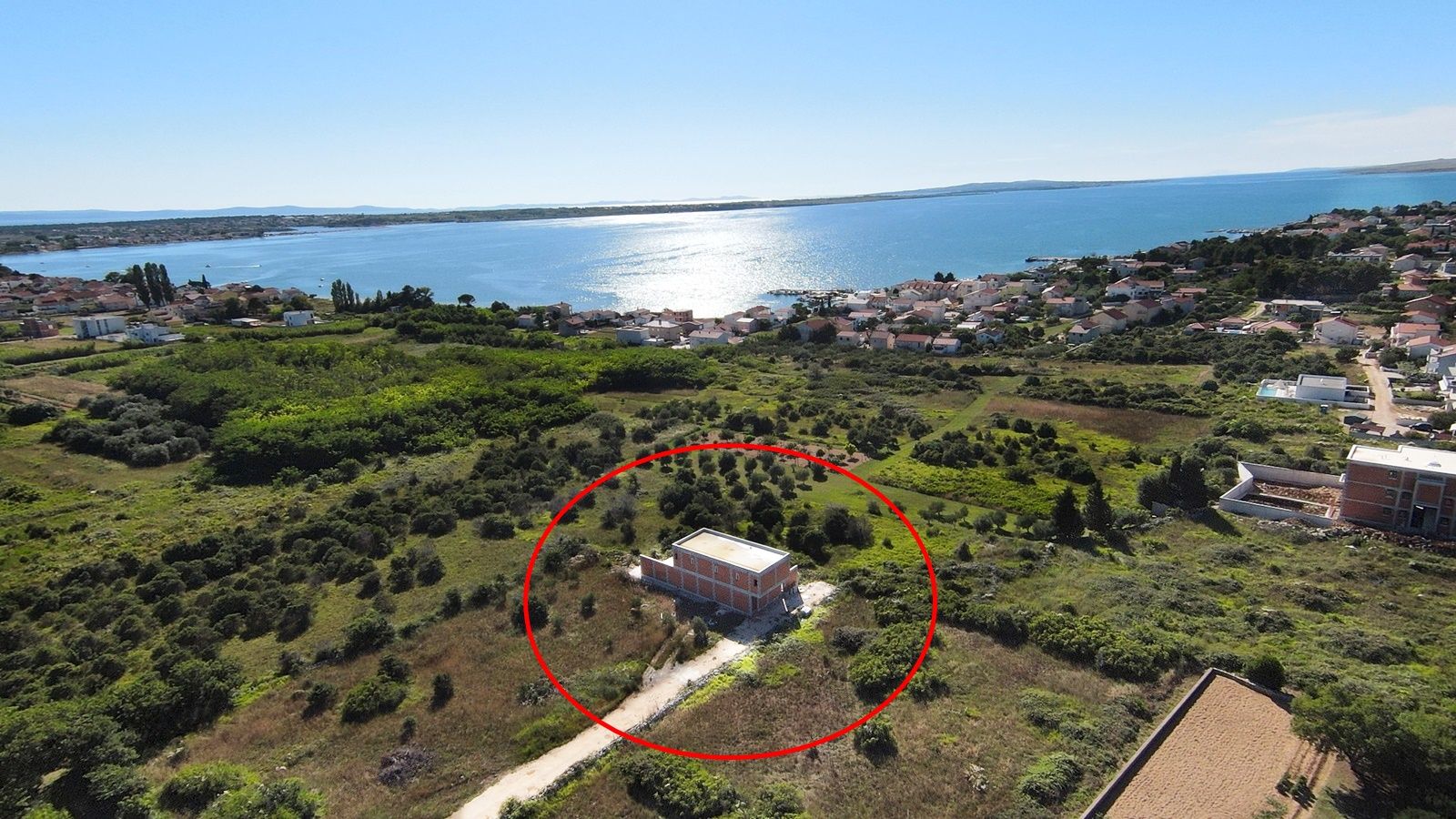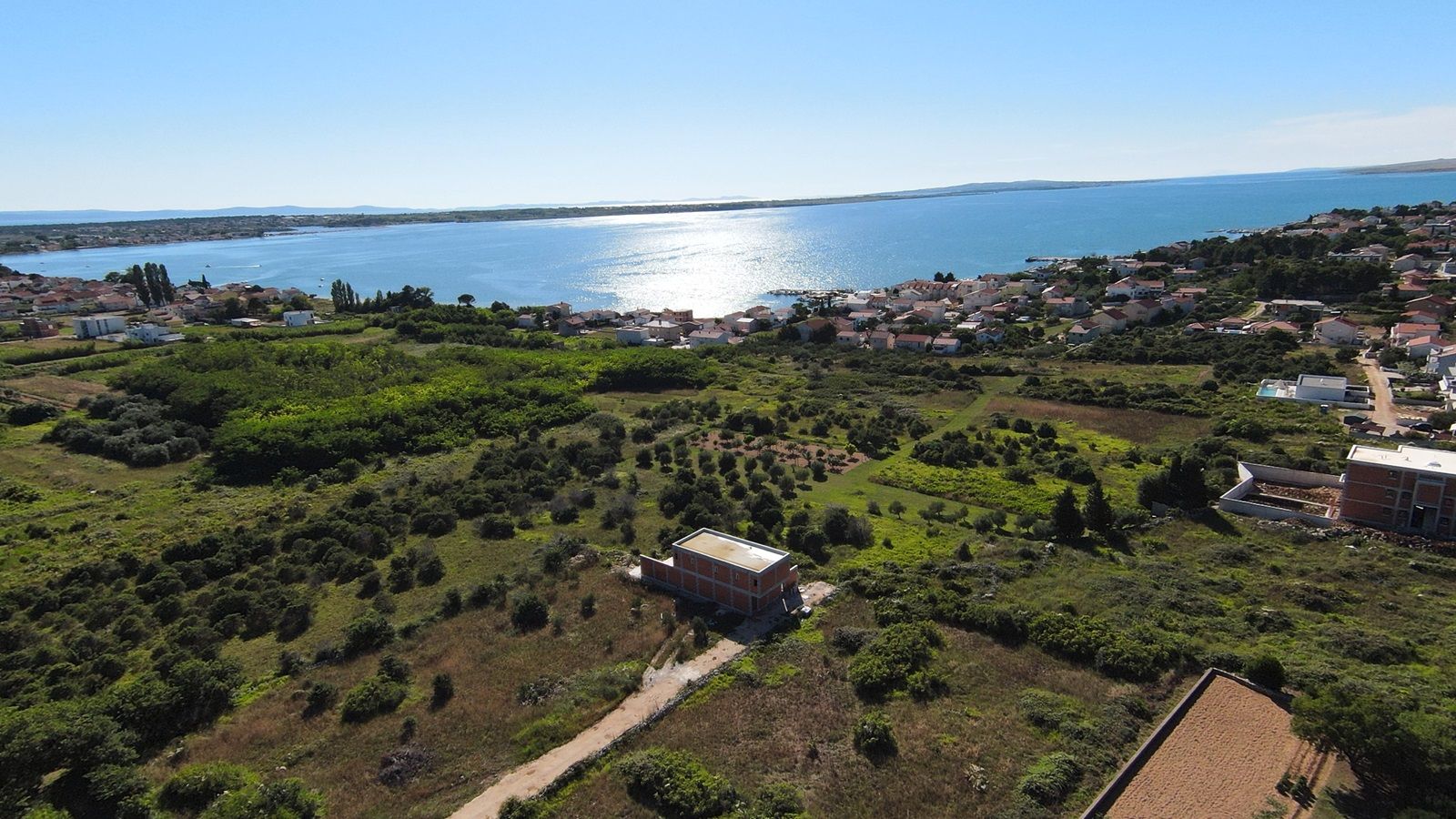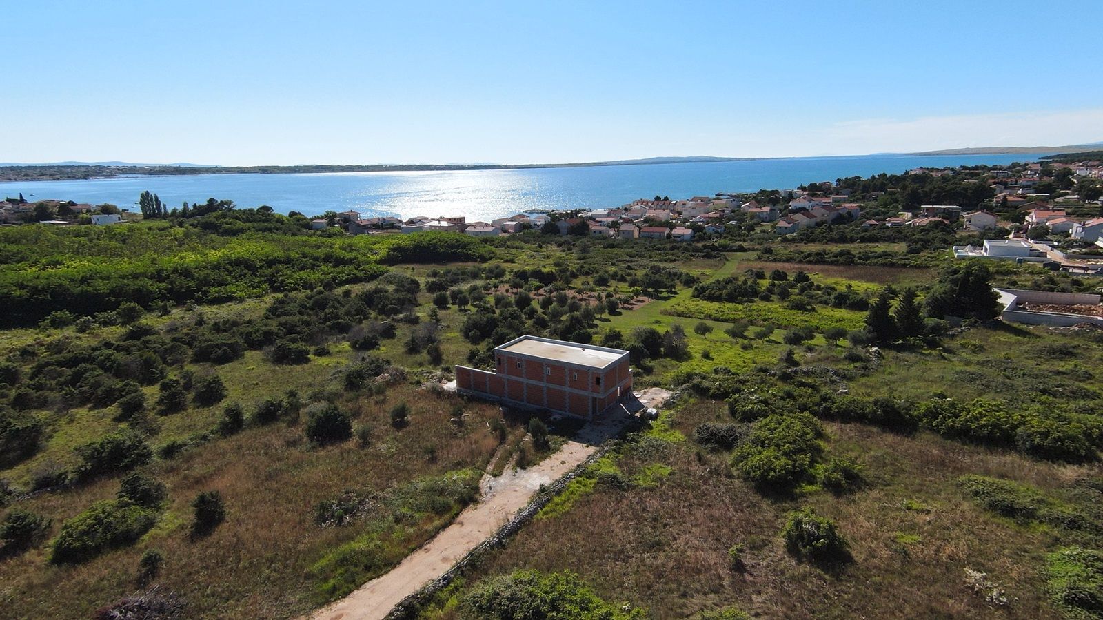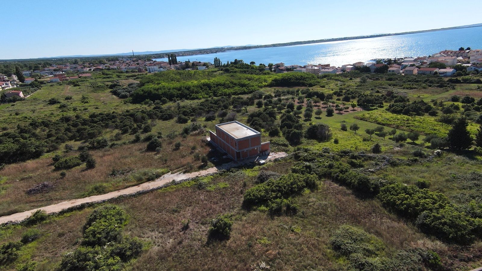 VRSI - moderne Villa mit Pool. Sie besteht aus einem Erdgeschoss und einem Stockwerk mit einer Gesamtgrundfläche von 156,20 m2. Im Erdgeschoss befinden sich der Eingang, WC, Waschküche, Flur, Treppe, Küche, Esszimmer, Wohnzimmer und eine Außenterrasse mit einem Pool von 18 m2. Im ersten Stock gibt es vier Schlafzimmer und drei Badezimmer. Zwei Schlafzimmer haben ihre eigenen Badezimmer, während die anderen beiden Schlafzimmer ein gemeinsames Badezimmer teilen. Die Schlafzimmer haben Zugang zu einem gemeinsamen Balkon.
