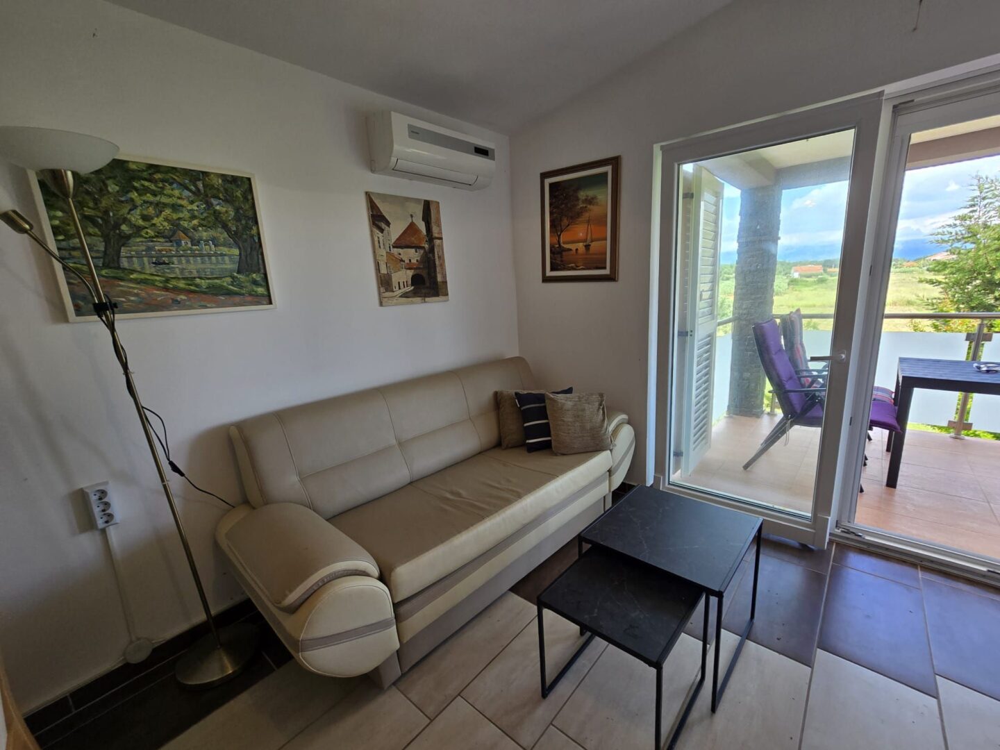 PRIVLAKA - Zum Verkauf steht eine Zweizimmerwohnung. Die Wohnung befindet sich im ersten Stock eines Gebäudes und besteht aus einem Vorraum, einer Küche, einem Esszimmer, einem Wohnzimmer, einem Flur, einem Badezimmer, zwei Schlafzimmern und einer Terrasse. Zur Wohnung gehört ein Parkplatz und ein Hof mit einer Fläche von 52 m2.