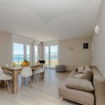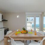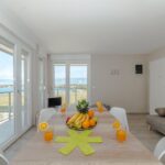 Die Wohnung befindet sich im ersten Stock eines kleinen Wohngebäudes mit einem herrlichen offenen Blick auf das Meer. Die Wohnung hat eine Gesamtnutzfläche von 73,98 m2 und besteht aus zwei Schlafzimmern, zwei Badezimmern, einem Wohnzimmer, einer Küche und einer Terrasse. Zur Wohnung gehört ein Parkplatz und das Recht zur Nutzung des gemeinsamen Pools, des Grillbereichs und des Spielplatzes für Kinder.