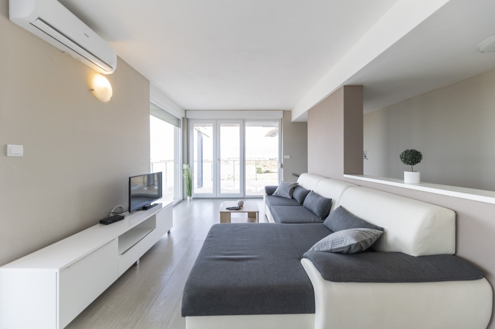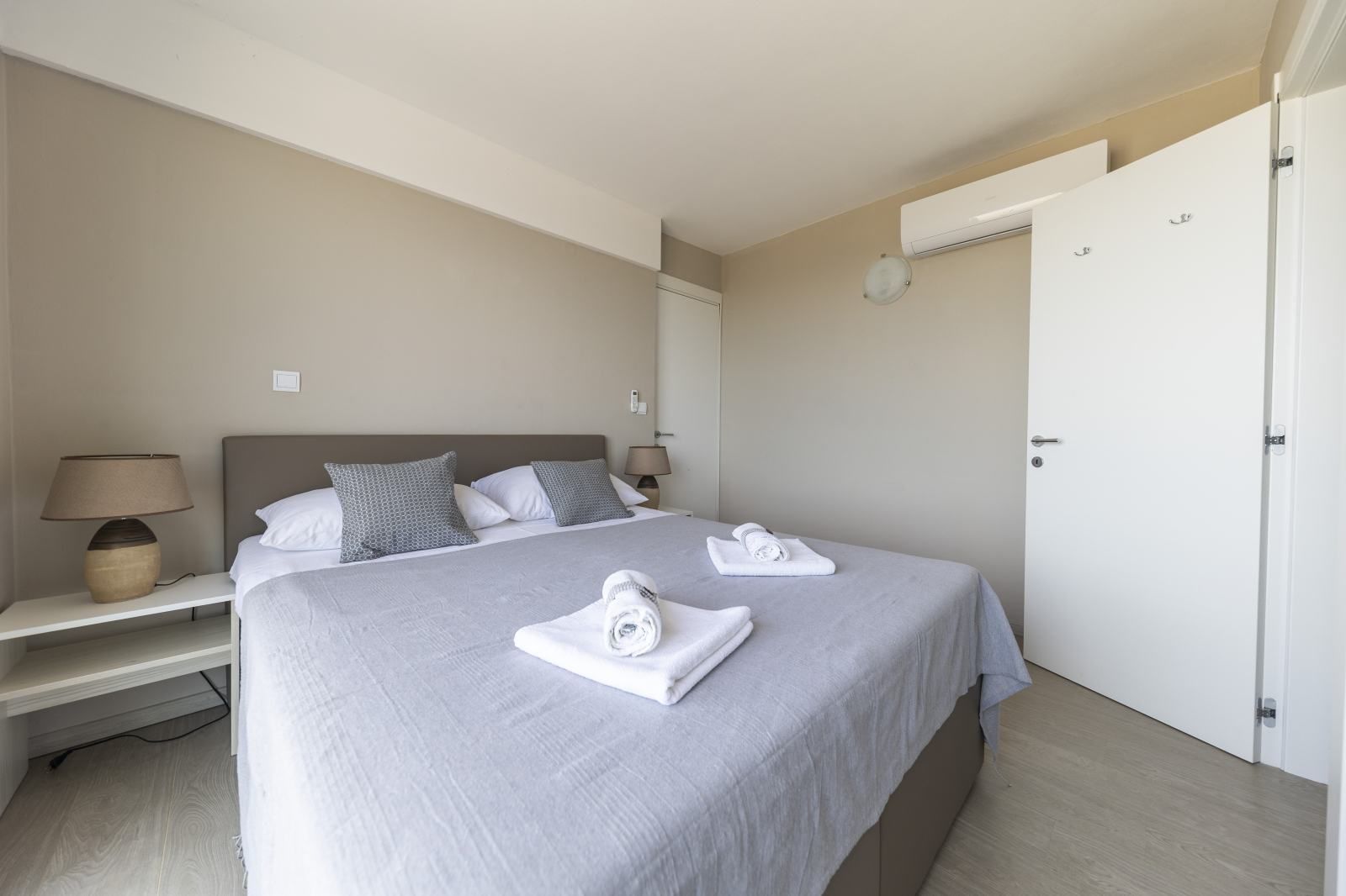 Die Wohnung hat eine Gesamtfläche von 136 m2 und besteht aus drei Schlafzimmern, zwei Badezimmern, einem Wohnzimmer und einer geräumigen Terrasse. Zur Wohnung gehört ein Parkplatz und das Recht zur Nutzung des gemeinsamen Pools, des Grillbereichs und des Kinderspielplatzes.