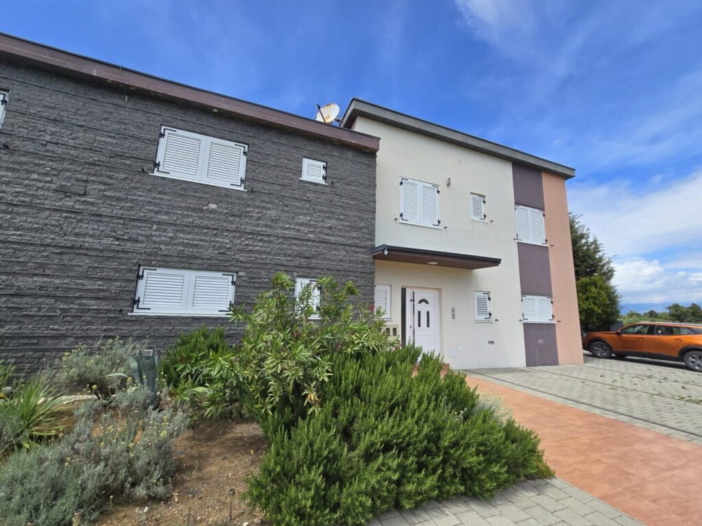 PRIVLAKA – Wohnung im ersten Stock eines kleineren Wohngebäudes. Die Wohnung besteht aus drei Schlafzimmern, von denen eines ein eigenes Badezimmer und einen begehbaren Kleiderschrank hat, sowie einem weiteren Badezimmer, einem WC, einer Küche, einem Wohnzimmer, einem Flur und einer Terrasse.